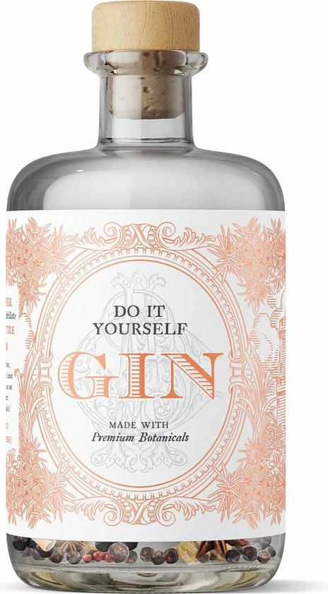 - Schenk een neutrale alcohol in de fles DIY Gin. Wij adviseren een (goedkope) vodka of nog beter: een jonge jenever. Jonge jenever wordt gemaakt van jeneverbessen en is daarom een goede basis van je eigen Gin;