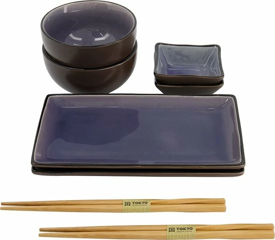 8-delig Sushi servies van Tokyo Design Studio voor 2 personen in luxe geschenkverpakking. Deze set is compleet; hier zit alles in wat je nodig hebt voor het opdienen van een heerlijk sushi diner. Door de luxe geschenkverpakking ook ontzettend leuk om als cadeau aan een sushi liefhebber te geven.