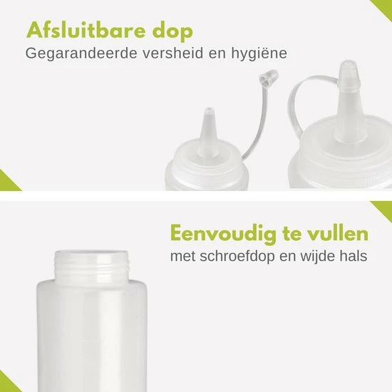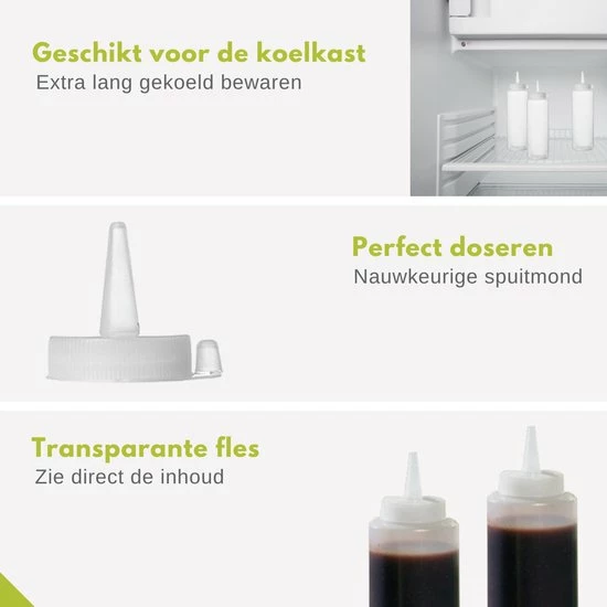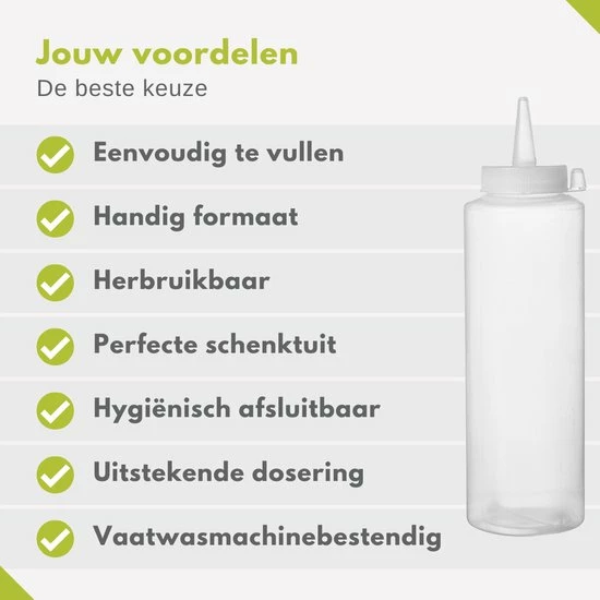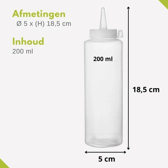 Ben jij een echte kookliefhebber en op zoek naar een handige doseerfles voor jouw beslag, sauzen of dressings? Dan is deze transparante knijpfles van Veluw® ideaal voor jou. Met deze garneerflessen doseer je altijd de gewenste hoeveelheid welke jij nodig hebt voor je recept of gerecht. Perfect voor het bereiden van poffertjes, pannenkoeken of het dreseren van een heerlijke salade. Een multifuctionele doseerfles voor in de keuken en een echte must-have voor iedere kookliefhebber!